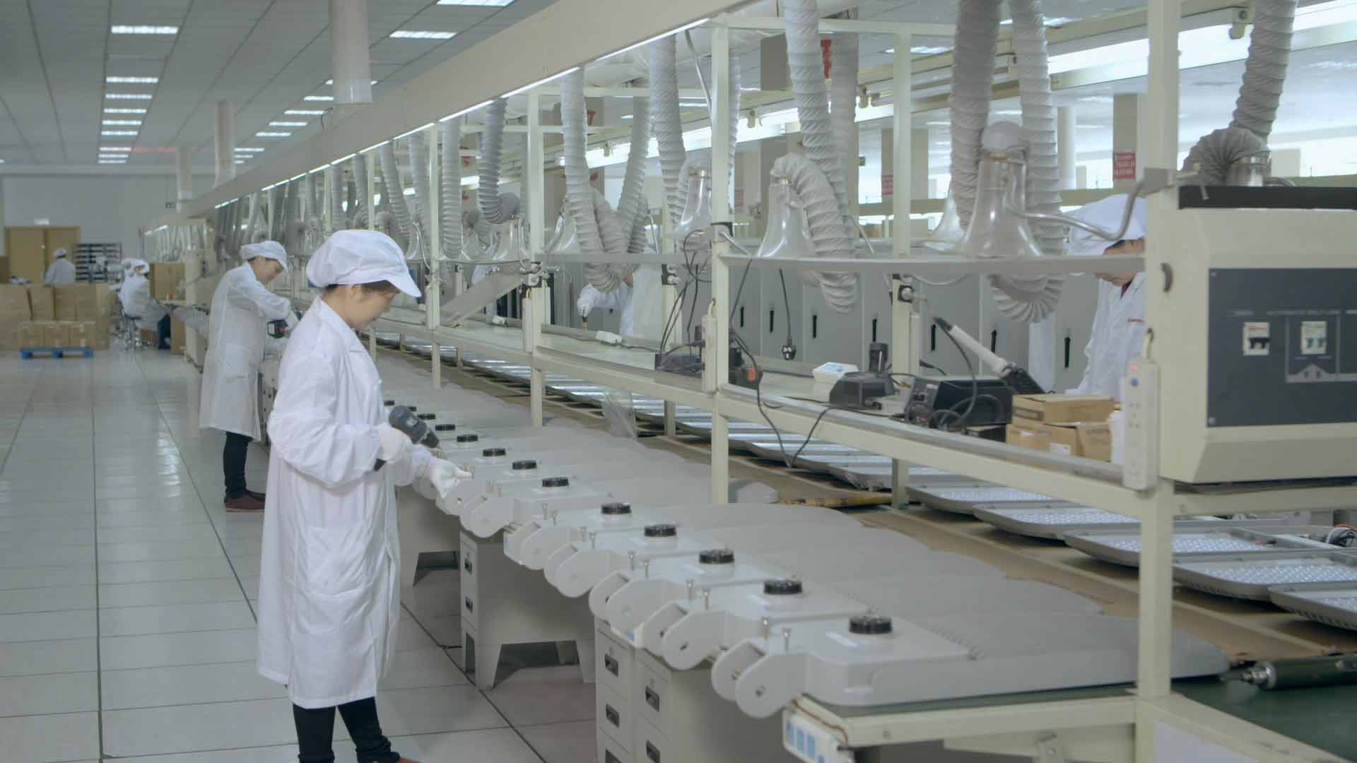 公司擁有4條自動化生產流水線,同時還引進了數控插件機、自動化波峰焊、成套的光學指標檢測設備及電子電氣指標檢測設備,建立起先進的規范化工藝流程、智能化生產運作體系。